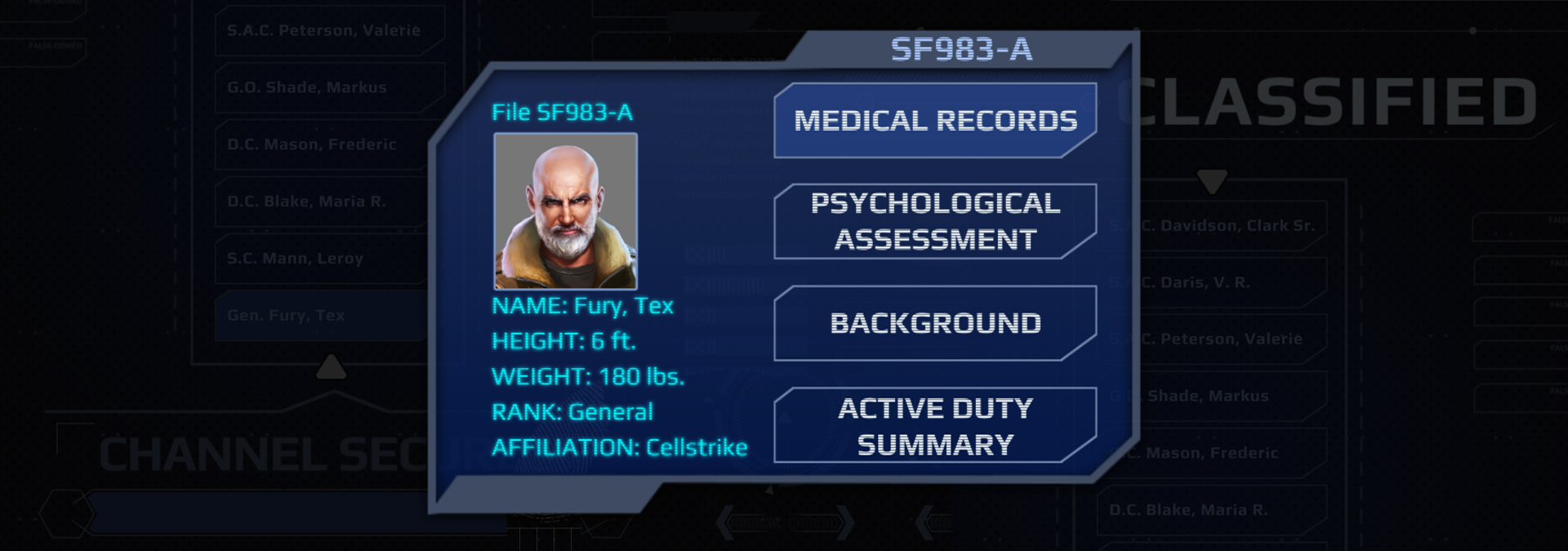 - Cellstrike member General Tex Fury, a fast-formed connection based on mutual trust and respect;